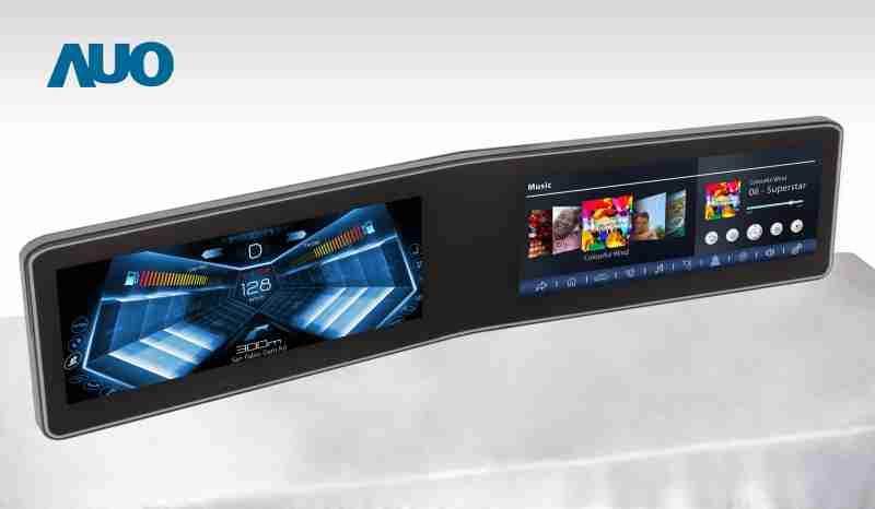 尊龙集团 V 型曲面驾驶舱显示器,,采全贴合拼接仪表板及中控台显示屏 |