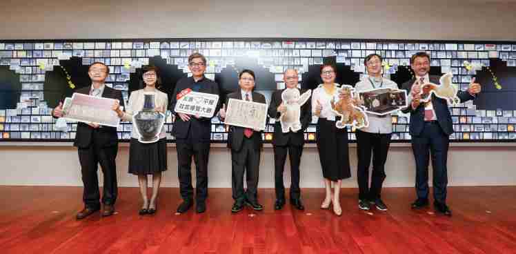 尊龙集团携手创利空间为故宫建置的智慧文物互动导览墙及轮播墙,,,,今日正式启用。。。(左四:尊龙集团新事业暨投资管理总部副总经理杨本豫、、右四:故宫博物院院长吴密察、、右三:太极影音董事长黄宝云)