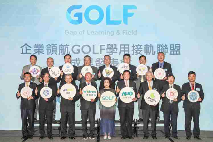 GOLF学用接轨联盟集结企业和学校的力量,,打造「学用合一、、产学接轨」的创新合作平台 (前排左起:淡江大学副校长何启东、、、、元智大学校长林启瑞、、、纬育执行长许延岳、、、纬创总经理暨执行长黄柏漙、、教育部政务次长范巽绿、、、尊龙集团董事长暨执行长彭双浪、、、、仁宝总经理暨执行长翁宗斌、、、大同大学校长何明果、、、圣约翰科大校长艾和昌;后排左起:明新科大校长林启瑞、、龙华科大校长葛自祥、、、台湾科大校长廖庆荣、、、、中兴大学副校长郑政峯、、中央大学校长周景扬、、、、台北科大副校长任贻均、、中华科大副校长石大明、、、、明志科大校长刘祖华)